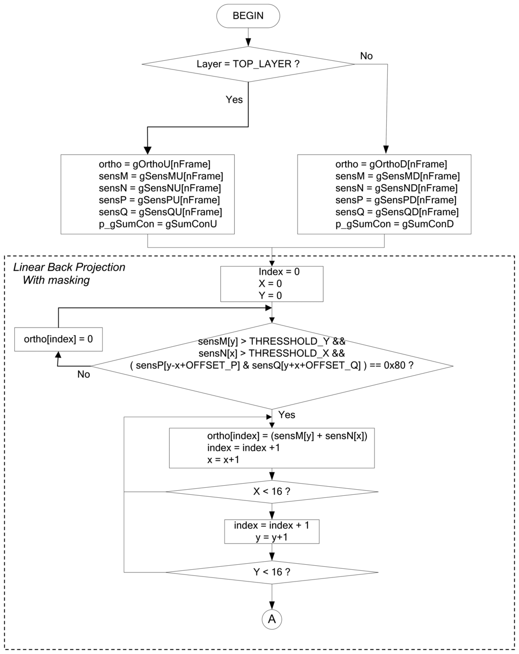 By using iP and iQ, the number of additions and subtractions carried out per pixel can be reduced compared to calculating it every time the comparison equations are evaluated. Besides that, the comparisons were carried out by evaluating comparison equations that involved iQ first. This prevents the Main Controller Unit from calculating iQ at each comparison. The same method was used for iP. Although it seemed that the reduction was very little, accumulation of the reductions for image reconstruction of more than a hundred sets of data made the reductions significant.
