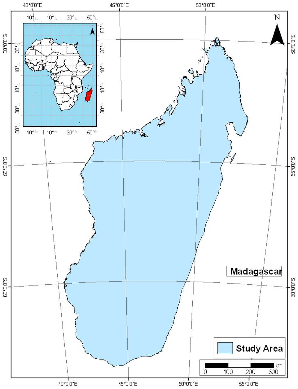 Our study area covers the whole country of Madagascar (Figure 1). Madagascar, the largest island in the Indian Ocean, is one of the biodiversity “hot spot” areas of the world. The island is home to 5% of the world's plant and animal diversity, more than 80% of which are endemic (Table 1). Mangrove forests occupy 25% of the 4,000-km coastline of Madagascar. The majority of the mangrove areas can be found in Mahajamba Bay, Bombetoka, South Mahavavy and Salala, and Maintrirano [1]. The Mahajamba Bay mangrove forests represent more than 10% of the mangrove forests in Madagascar.