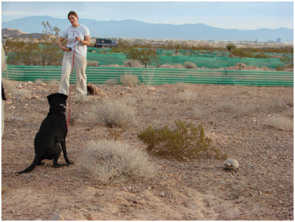 We wish to thank the University of Redlands and specifically students Rich Inman, Steve Francis and Ben Yetman who were instrumental in data collection. Alice Whitelaw and Aimee Hurt participated as dog handlers. We thank Michelle McDermott for her assistance with tortoises at the Desert Tortoise Conservation Center and the US Fish and Wildlife Service Desert Tortoise Recovery Office for their support of the project. This work was conducted under USFWS permit TE-073505 and Animal Care and Use Protocol #A3/04-34.
