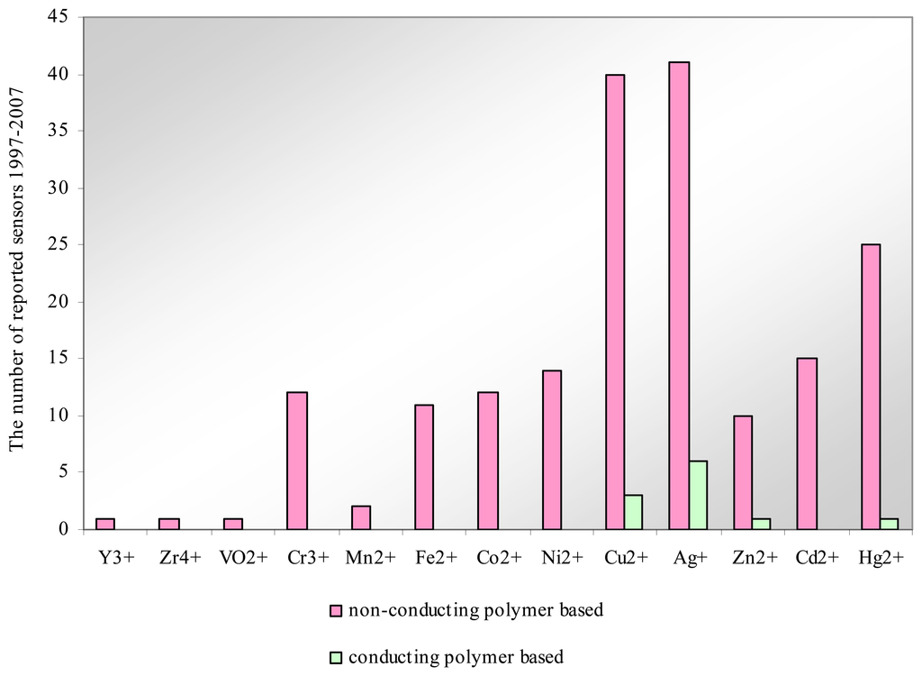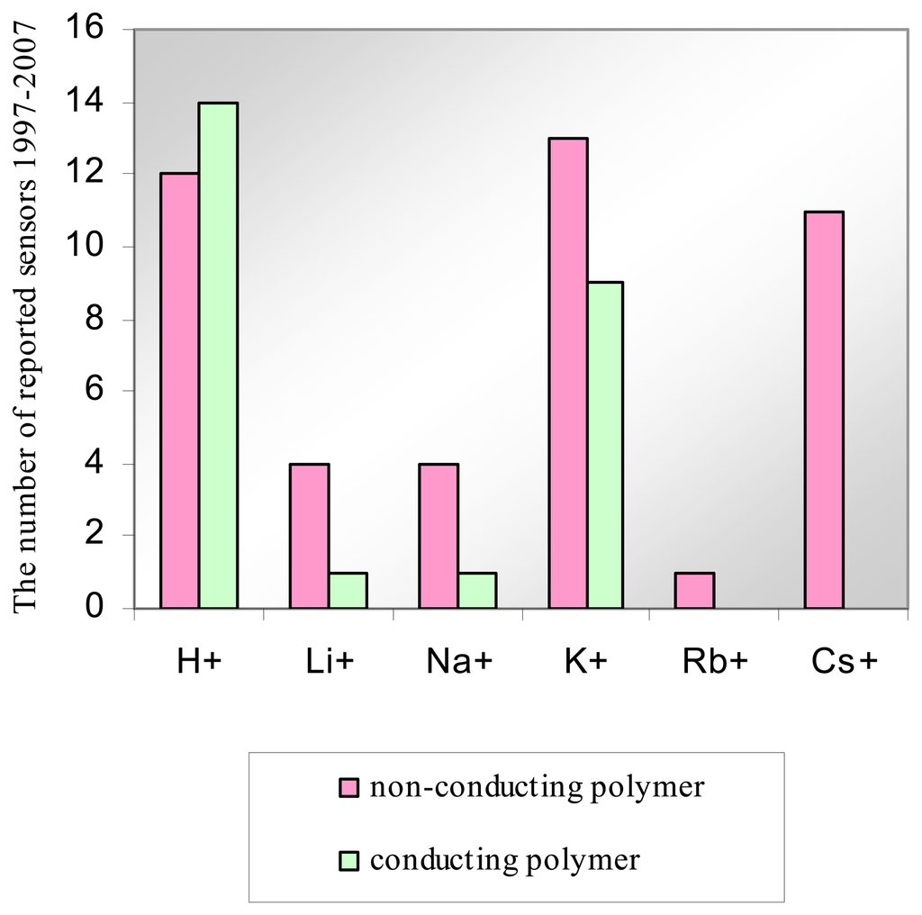 The statistical diagram of the reported potentiometric membrane sensors based on conducting and non-conducting polymer for alkali cations is shown in Figure 5.