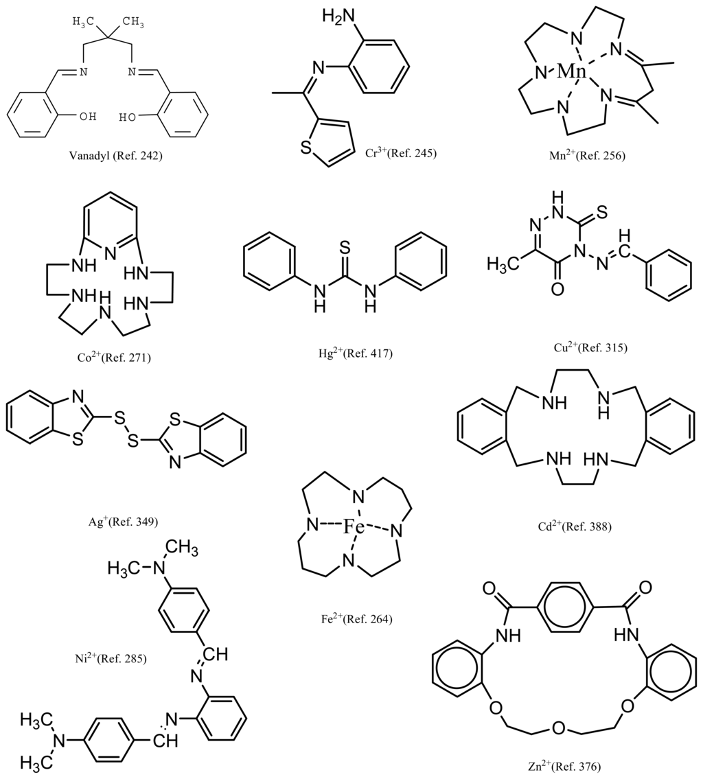 Structures of suitable ionophores used in construction of ion selective membrane sensors for some of second main group cations.