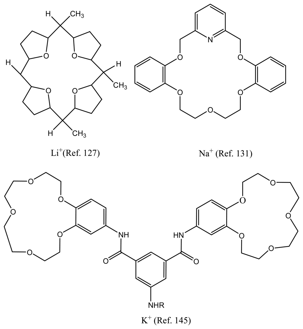 Some of the above ionophores used in construction of non-conducting polymer ISEs for first main group cations are shown in Figure 6.