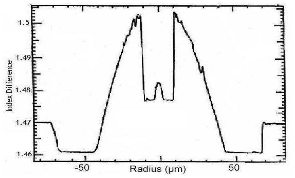 Refractive index profile of 140-μm outer diameter dual core FTDM fiber.