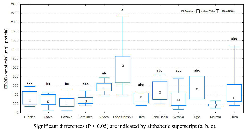 EROD activity in male chub (Leuciscus cephalus L.) livers.