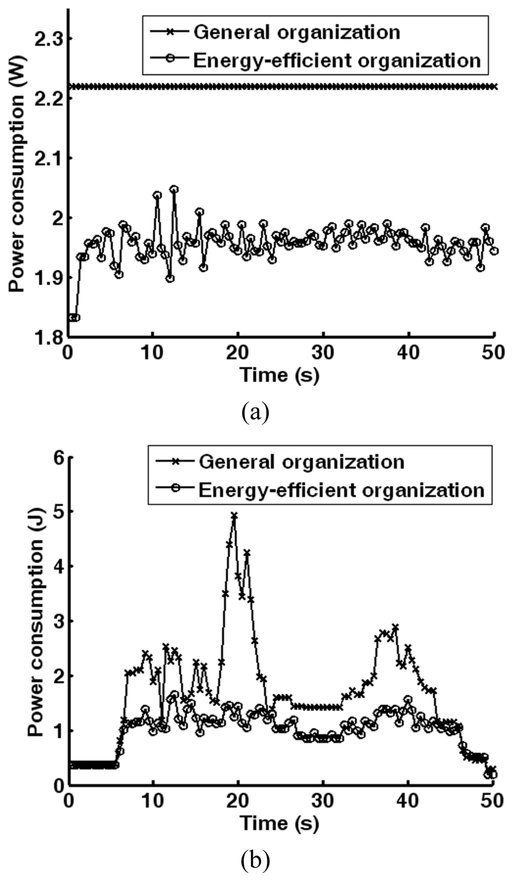 denote the energy consumption with general and energy-efficient organization, respectively. Thus, 12.3% operation cost and 40.7% transmission cost is saved during target tracking.