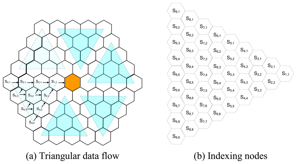 Figure 4(b), we can see that sensor nodes on either edges of the triangle { S