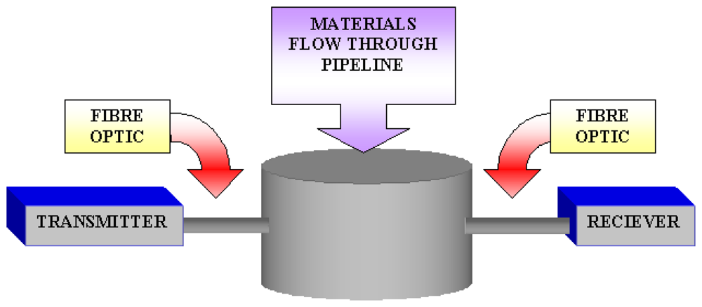 In the area of tomographic imaging, an initial investigation into using fibres optic as measurement sensors in pneumatic conveying was started in Sheffield Hallam University [3]. In using optical fibre for tomography imaging, the basic optical transmitter converts electrical input signals into modulated light for transmission over an optical fibre. Also, the light beam from the transmitter is being received by the receiver via the fibre optic. This configuration is being illustrated in Figure 2.
