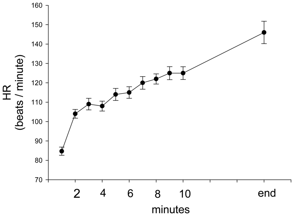The group average and standard error of HR during stepping exercise.