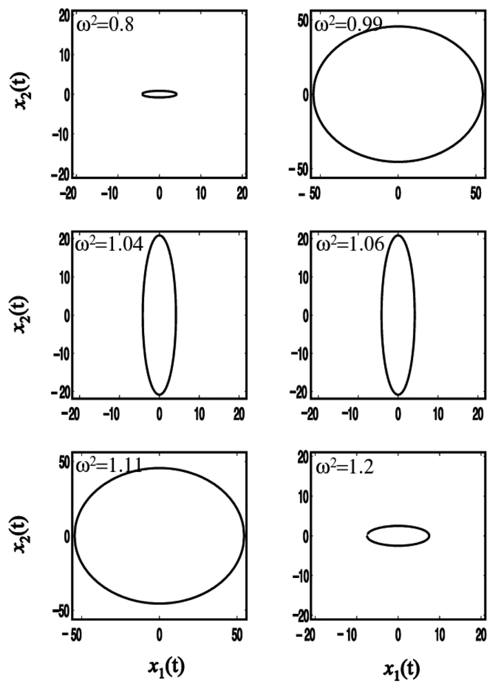 Consider a gyroscope with k12 = 1 and F1 = 1 for the simplicity of calculation. The amplitudes of x1(t) and x2(t) are from (3) and (4)