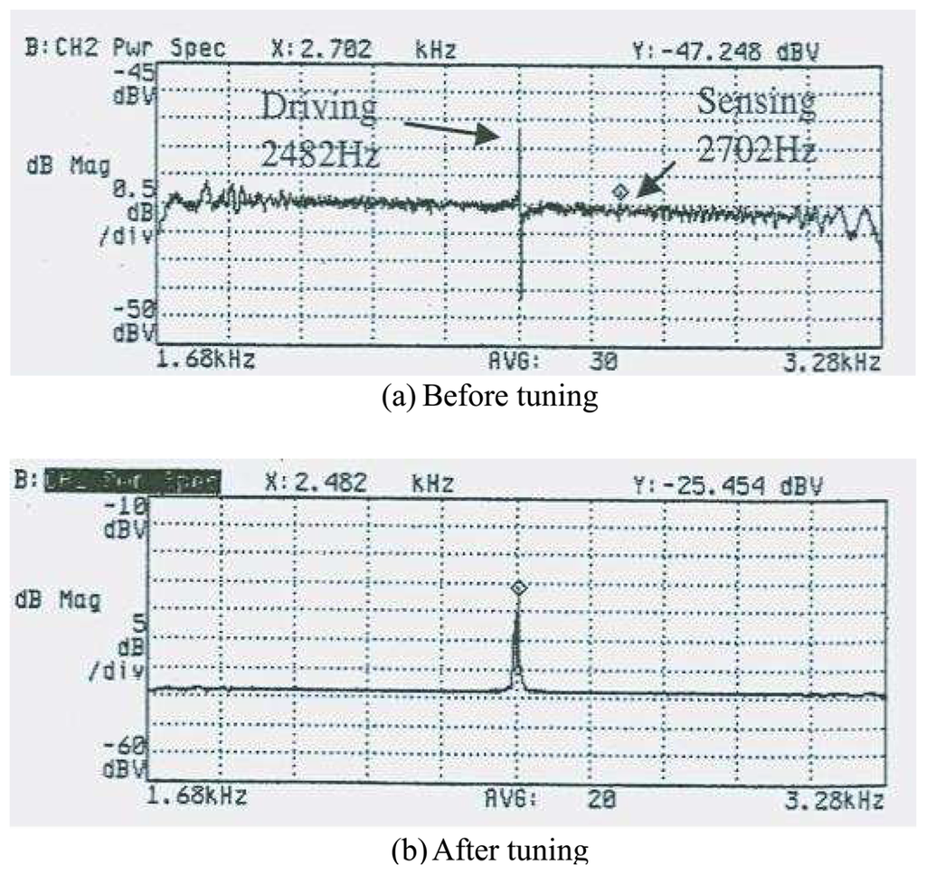 The experimental results for the gyroscope (a) Before tuning (b) After tuning.