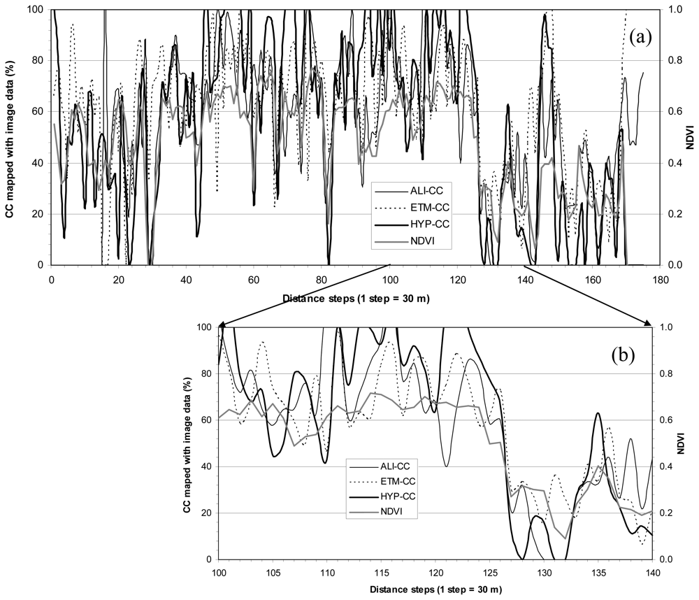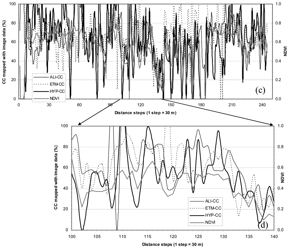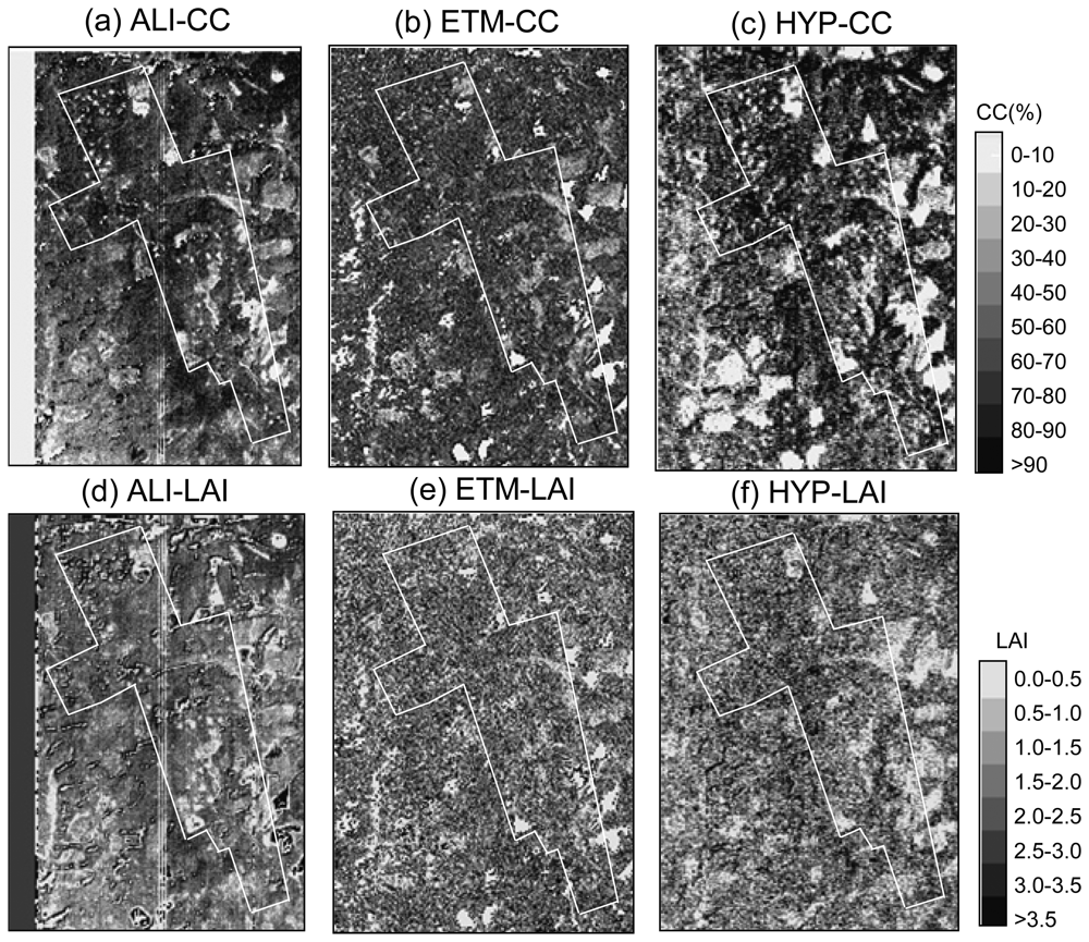 Comparative Analysis of EO-1 ALI and Hyperion, and Landsat ETM+ Data for Mapping Forest Crown Closure and Leaf Area Index