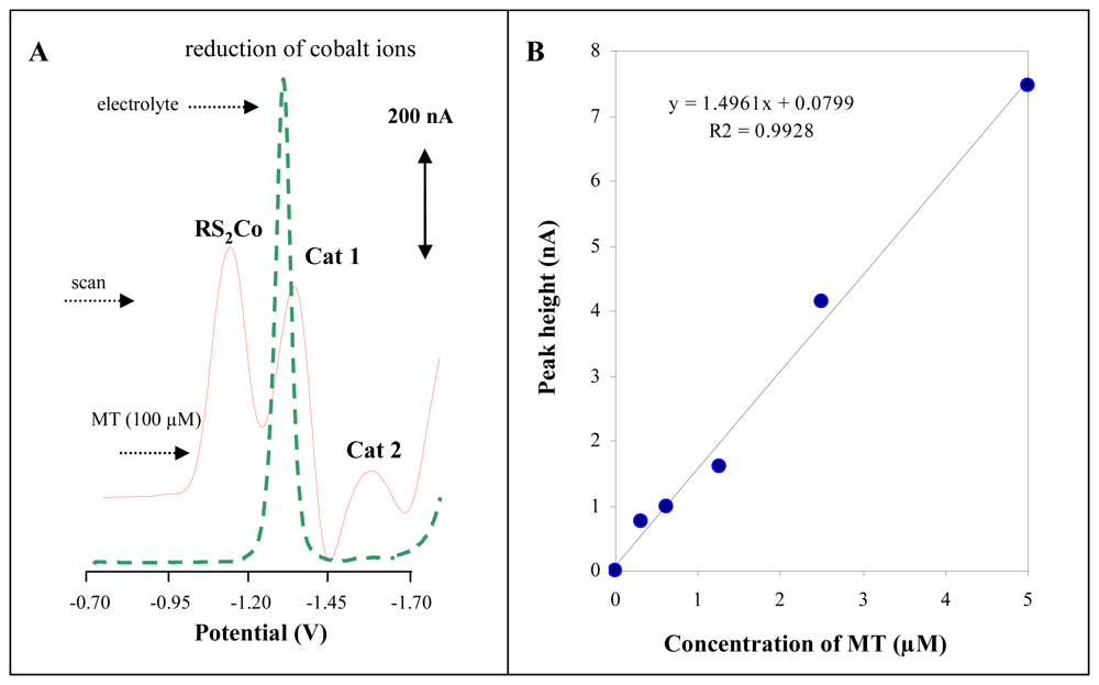 - Trnkova, L.; Kizek, R.; Vacek, J. Catalytic signal of rabbit liver metallothionein on a mercury electrode: a combination of derivative chronopotentiometry with adsorptive transfer stripping. Bioelectrochemistry 2002, 56, 57–61. [Google Scholar]