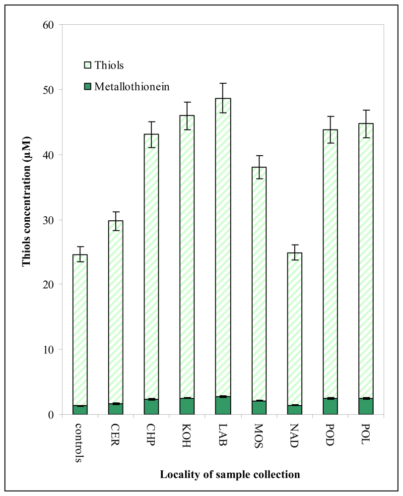 - Krizkova, S.; Zitka, O.; Adam, V.; Beklova, M.; Horna, A.; Svobodova, Z.; Sures, B.; Trnkova, L.; Zeman, L.; Kizek, R. Possibilities of electrochemical techniques in metallothionein and lead detection in fish tissues. Czech J. Anim. Sci. 2007, 52, 143–148. [Google Scholar]