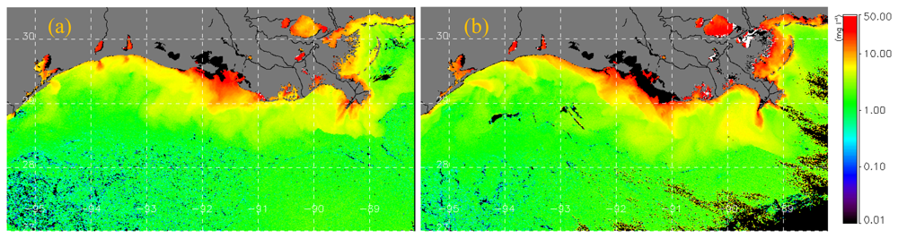 - D'Sa, E.J.; Miller, R.L.; McKee, B.A. Suspended particulate matter dynamics in coastal waters from ocean color: Applications to the Northern Gulf of Mexico. Geophysical Research Letters 2007, 34, L23611. [Google Scholar] [CrossRef]