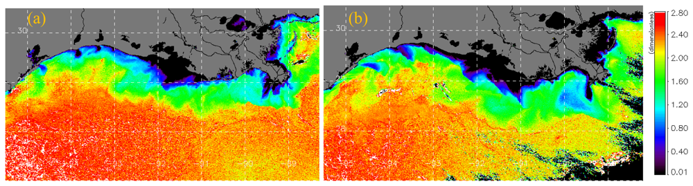 This work has been supported by a NASA grant NNA07CN12A (Applied Sciences Program) and by a Minerals Management Service–LSU Coastal Marine Institute Cooperative Agreement 1435-0104CA32806. The authors would like to thank Dr. M. Korobkin for help in processing the satellite data.
