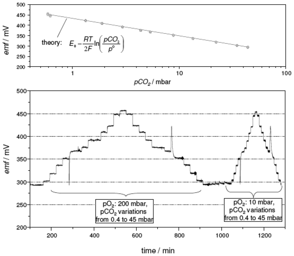 emf of these cells was shown to depend solely on the carbon dioxide partial pressure