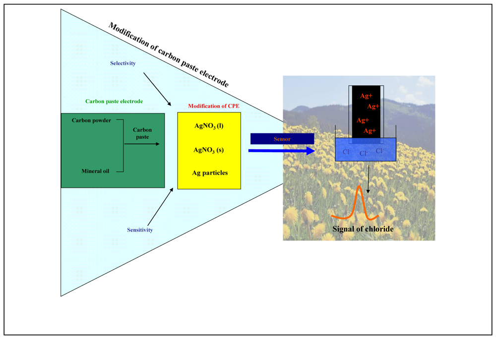 Sensor is based on modification of a carbon paste electrode with silver (I). Reaction between silver (I) and chloride ions provides high selectivity and sensitivity for detection of chloride.