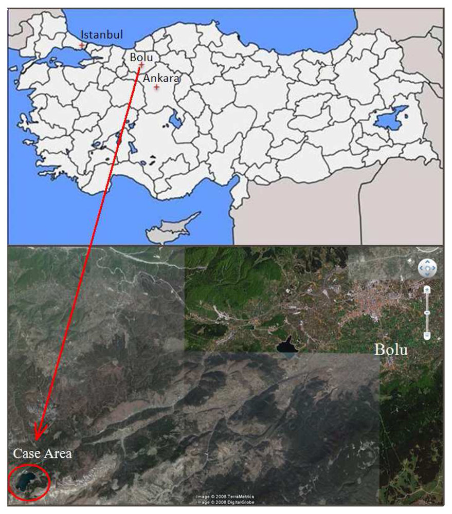 The lake, which is of natural and eutrophic-character, lies parallel to the Black Sea coast of the Western Black Sea geographical region and is located on the secondary mountain ranges of Turkey. It is 240 km away from Istanbul, 210 km away from Ankara and 22 km away from highway E5 (Figure 1). The Abant region is included in Europe-Siberia phytogeographic region. The park is surrounded by mountains having elevations of up to 1,700 m [8].
