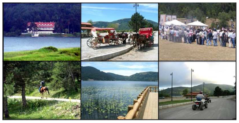 Within the forest lands criteria, “vista points”, with 4.5 points, has been found to be the most important element. The study area exhibits many different areas of scenic beauty in all four seasons. It is possible to see the harmony between the lake and the plants. Trees having foliation like Fagus orientalis Lipsky. (Eastern beech) and Acer sp. (Maple) and evergreen trees like Pinus nigra Arnold. (Black pine), Pinus sylvestris L. (Scots pine) and Abies bornmülleriana (Uludağ fir) provide beautiful scenary in autumn.