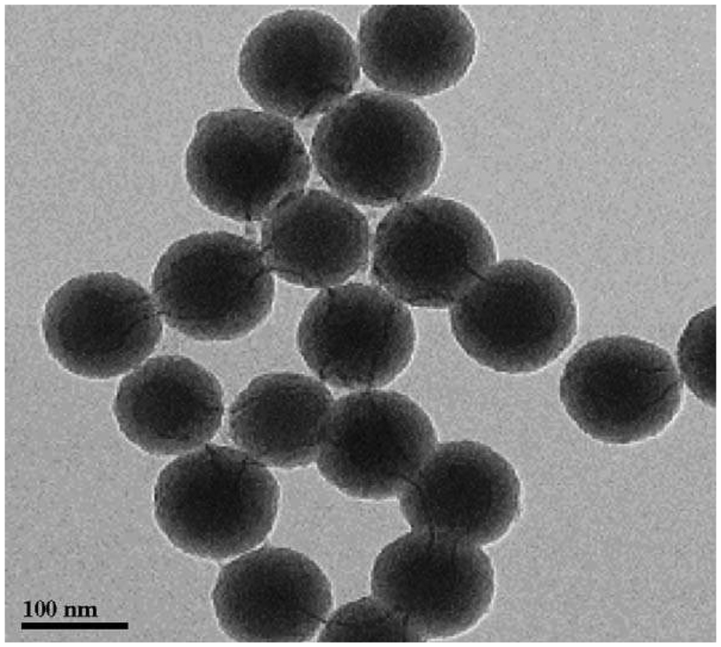 TEM image of Ru(bpy)32+-doped silica nanoparticles. Reproduced with permission of Elsiever [22].