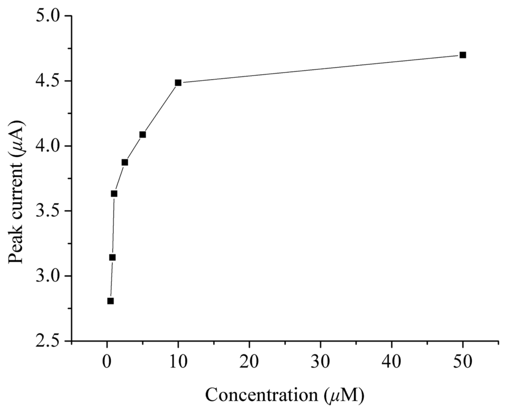 Relationship between the oxidation peak current of hIAPP and its concentration.