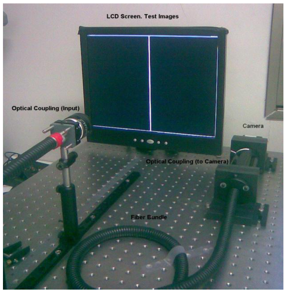 - Demuynck, O.; Esteban, O.; Lázaro, J.L.; Gamo, J.; Cubillo, A. Image Transmission through a Fiber Optic Bundle Inconsistent. Proceedings of Spanish 4th meeting of Optoelectronics, OPTOEL'05, Elche, Spain, July 13-15, 2005; pp. 183–186.