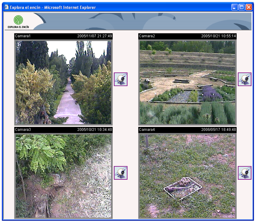 Clicking the icons placed on the right of every video image, we can access the control web page for each camera. The web page for each camera (see Figure 11) shows a greater image with the same quality and the user is able to change its vertical (till 90 degrees) and horizontal (till 270 degrees) orientation.