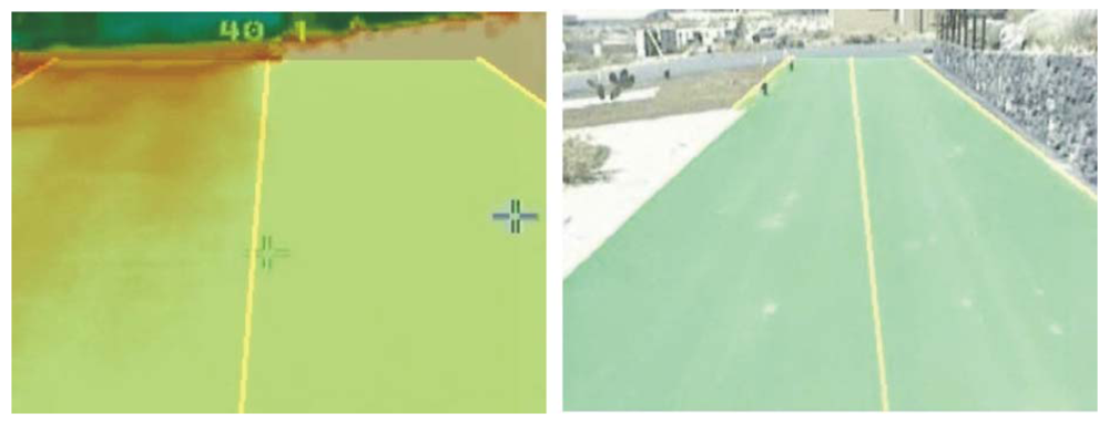 Example of how thermal (right) and visible (left) spectrum information is joined to improve the road detection.