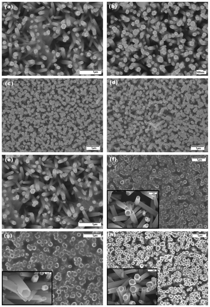 - Li, Q.; Kumar, V.; Li, Y.; Zhang, H.; Marks, T.J.; Chang, R.P.H. Fabrication of ZnO nanorods and nanotubes in aqueous solutions. Chem. Mater. 2005, 17, 1001–1006. [Google Scholar]