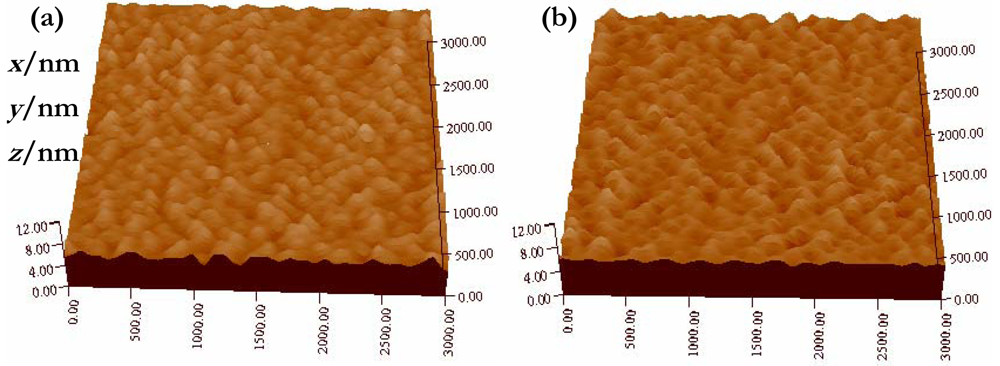 AFM images for (a) pristine and (b) Cd-doped thick films.
