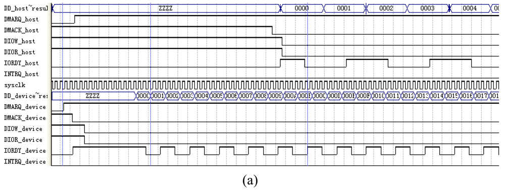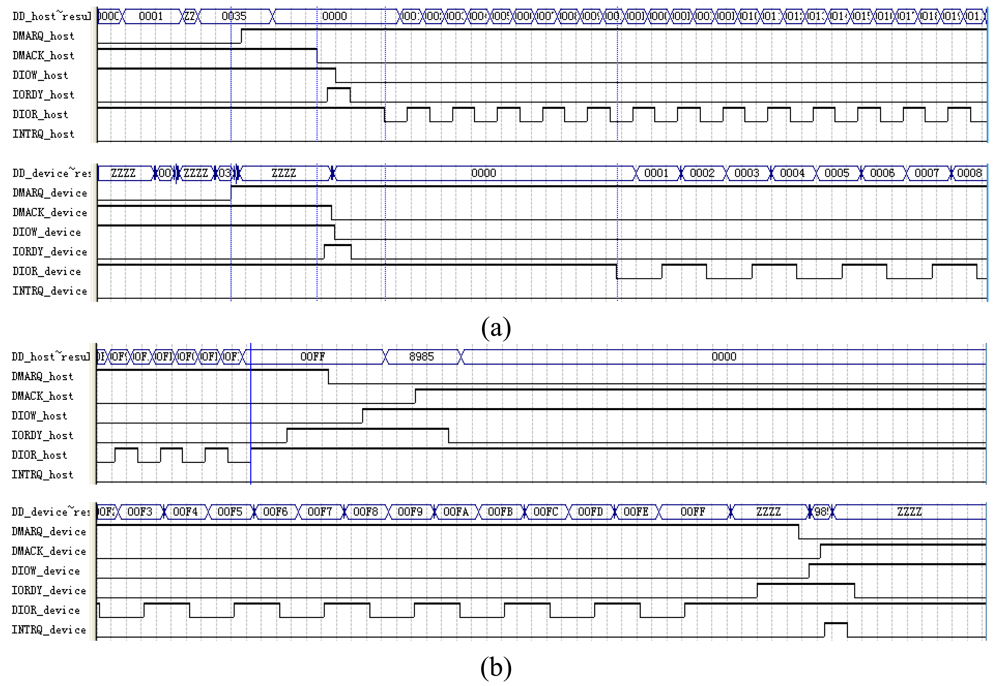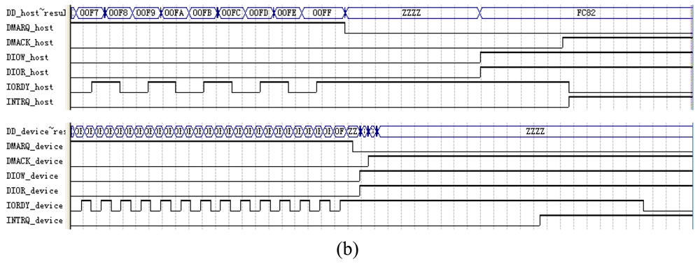 (a)Simulation of initiating an UDMA data-out burst. (b)imulation of device terminating an UDMA data-out burst.