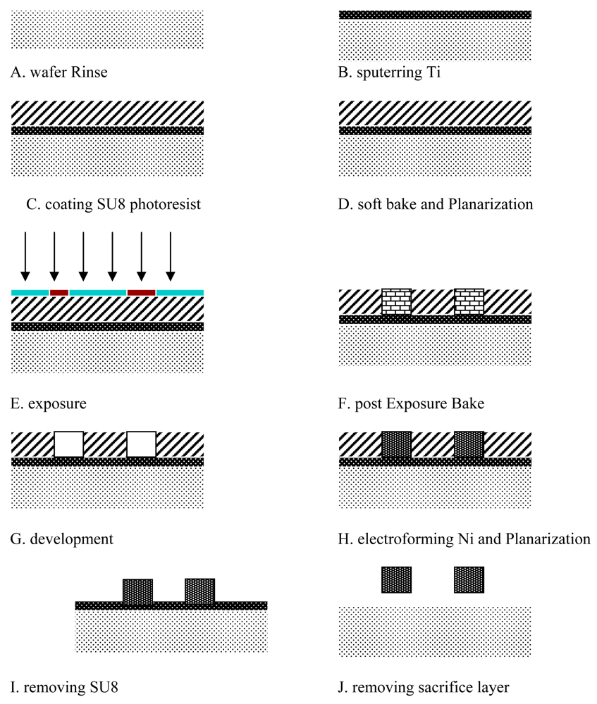 The Ratchet wheel, pawl and CMGs are fabricated by an LIGA-like process based on SU-8 [17-19]. The main microfabrication flowchart is shown in Figure 27.