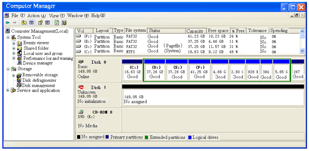 - The host computer could not identify the hard disk without the portable hard-disk encryption system (Figure 33). The host computer regards the hard disk as an unformatted hard disk. In this case, the host computer could not read the encryption data in hard disk, and the identifiers could not be found in the explorer of the host computer.