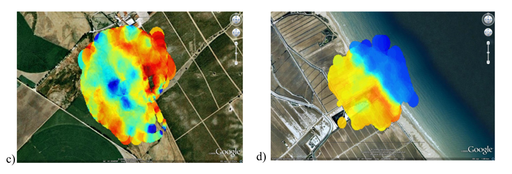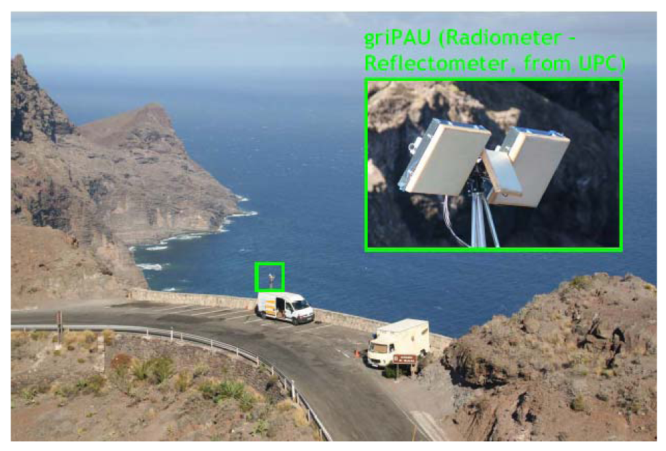 During May-June 2008 the first PAU-One Receiver was deployed at El Mirador del Balcón, La Aldea de San Nicolás, in the North-West coast of Gran Canaria in the Canary Islands, and gathered for the first time ever L-band radiometric and GNSS-R data, together with oceanographic data (sea surface temperature + sea surface directional spectrum buoys). The field experiment was repeated during the same period of time in 2009 with an improved version of the instrument (griPAU) that collected radiometric and GNSS reflectometric data collocated both in time and space using two different antennas with the same 22° beamwidth (Figure 14).