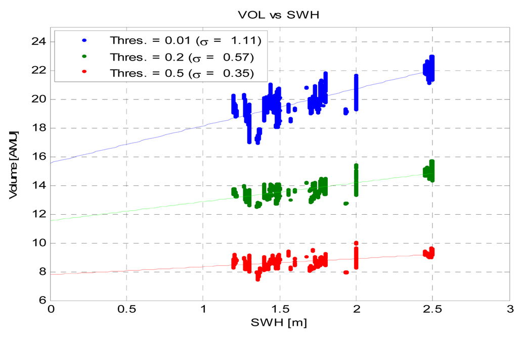 DDM-volume dependence on the SWH for three different thresholds [8].