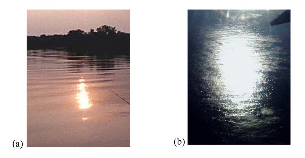 Sun glint over the sea under: (a) calm and (b) windy conditions.