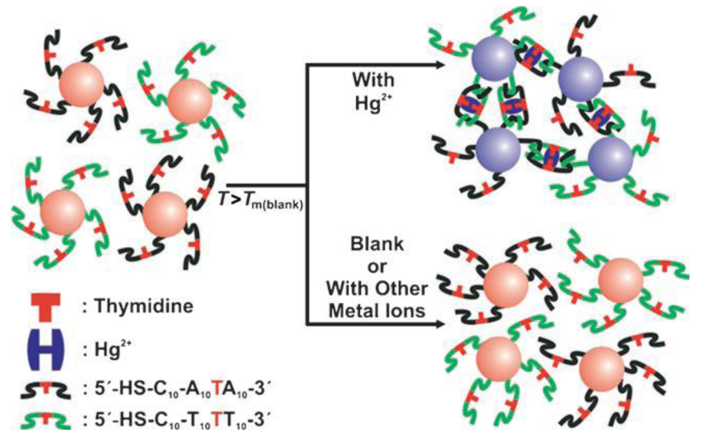 Colorimetric detection of Hg2+ using DNA-Au NPs. Reprinted with permission from Ref. [].