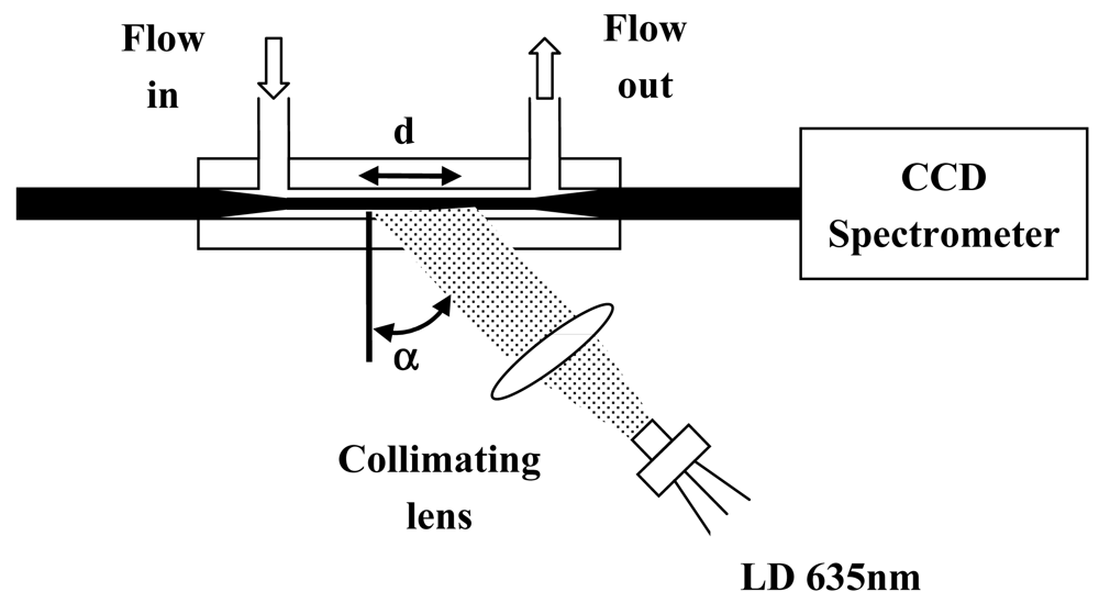 - Mignani, A.G.; Falciai, R.; Ciaccheri, L. Evanescent wave absorption spectroscopy by means of bi-tapered multimode optical fibers. Appl. Spectrosc. 1998, 52, 546–551. [Google Scholar]