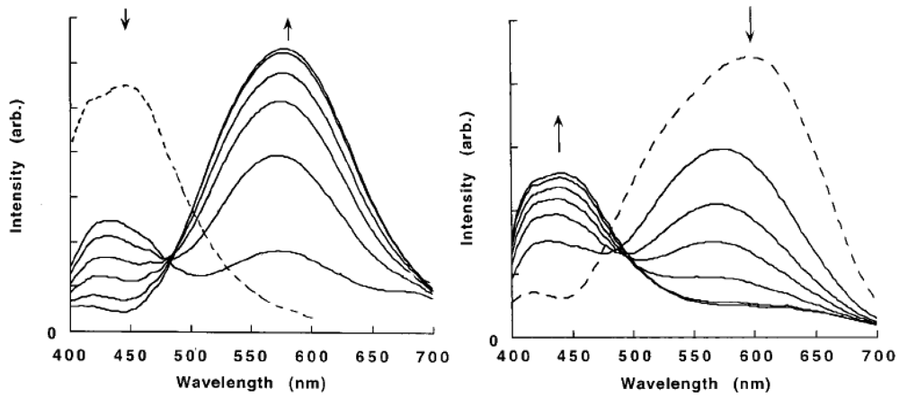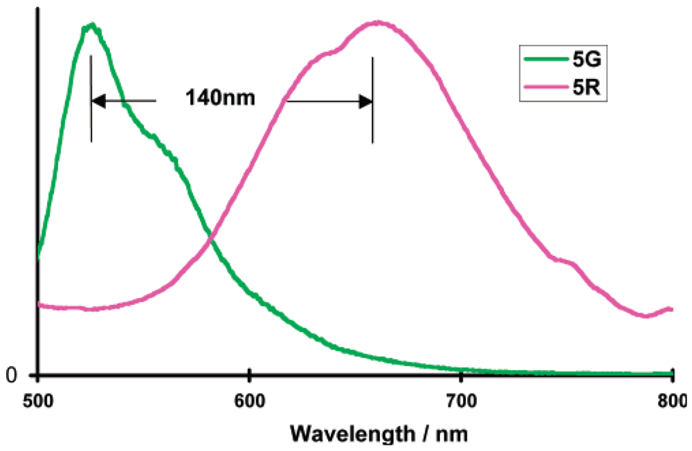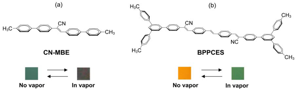 - An, B.-K.; Kwon, S.-K.; Park, S.Y. Highly sensitive fluorescence probes for organic vapors: on/off and dual color fluorescence switching. Bull. Korean Chem. Soc. 2005, 26, 1555–1559. [Google Scholar]