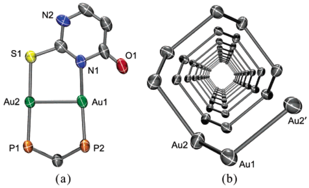 - van Zyl, W.E.; López-de-Luzuriaga, J.M.; Fackler, J.P. Luminescence studies of dinuclear gold(I) phosphor-1,1-dithiolate complexes. J. Mol. Struct. 2000, 516, 99–106. [Google Scholar]