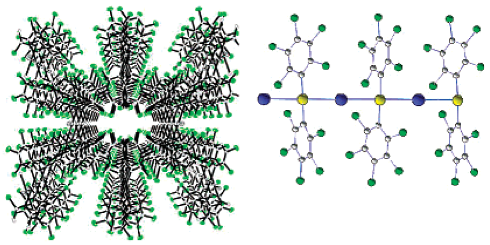 - Fernández, E.J.; Lopez-de-Luzuriaga, J.M.; Monge, M.; Montiel, M.; Olmos, M.E.; Perez, J. A detailed study of the vapochromic behavior of {Tl[Au(C6Cl5)2]}n. Inorg. Chem. 2004, 43, 3573–3581. [Google Scholar]