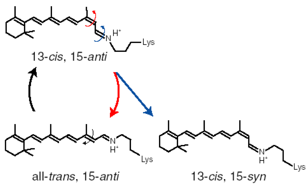 - Kandori, H. Retinal Binding Proteins: From cis-trans Isomerization in Biochemistry; Wiley-VCH: Freiburg, Germany, 2006; Volume Chapter 4. [Google Scholar]