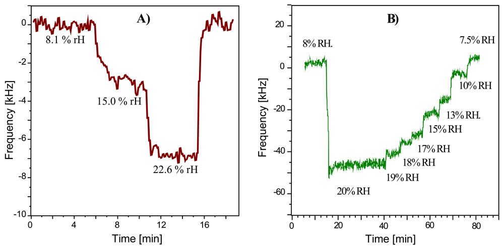 - Penza, M.; Cassano, G. Relative humidity sensing by PVA-coated dual resonator SAW oscillator. Sens. Actuat. B 2000, 68, 300–306. [Google Scholar]