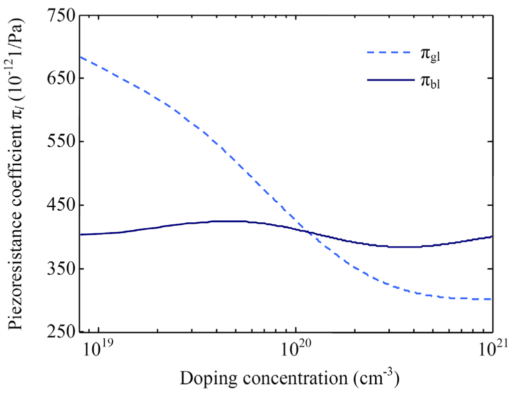 where πgl and πgt are the longitudinal and transversal PRCs of p-type monocrystalline silicon in the [111] orientation, respectively.
