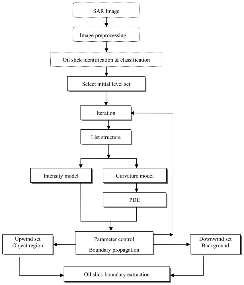 - Huang, B.; Li, H.G.; Huang, X. A level set approach to segmentation of oil slicks in SAR images. International Journal of Remote Sensing 2005, 26, 1145–1156. [Google Scholar]