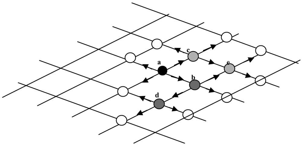 The above algorithm is further illustrated by an example in Figure 4. Pixel a is assumed to be a seed and the object region and background are divided into two sets. In order to improve the object boundary propagation efficiency, a list is adopted, which aids tracing the boundary change. List serial operations such as pop_front, push_back and deletion pixel during each iteration are employed to enhance performance. Pixel a is set with an initial value and pushed back into the list. Then, front pixel a is popped to compute the value of its neighboring pixels by using the intensity model and the curvature model. The use of the up-wind PDE is applied to calculate downwind and upwind neighboring pixels level set value. Furthermore, if the