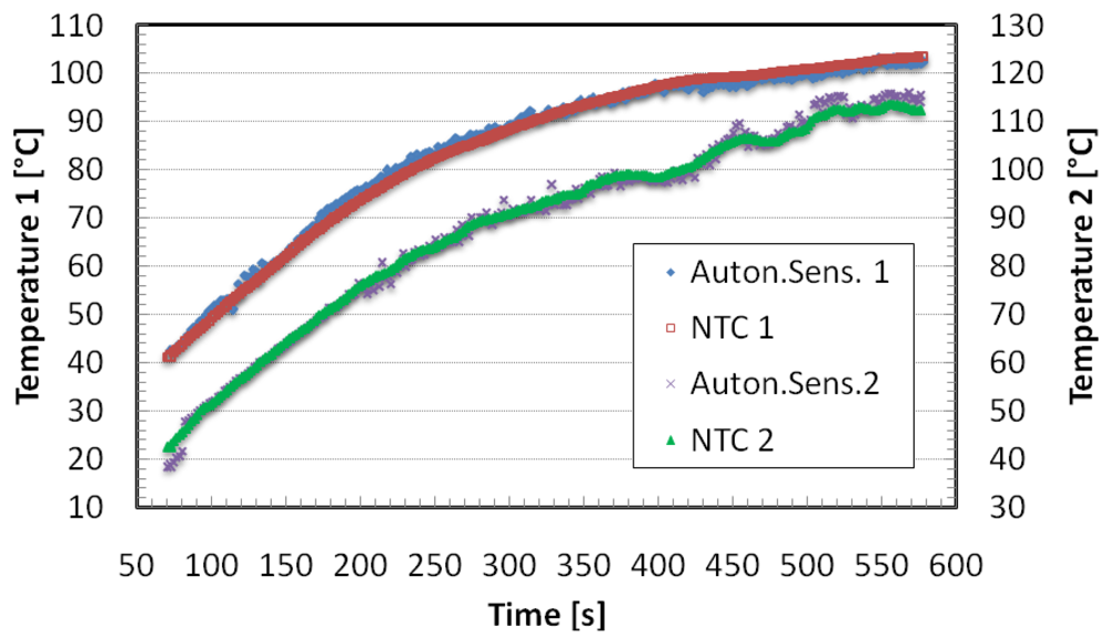 Autonomous sensors measured temperature and reference NTC measured temperature.