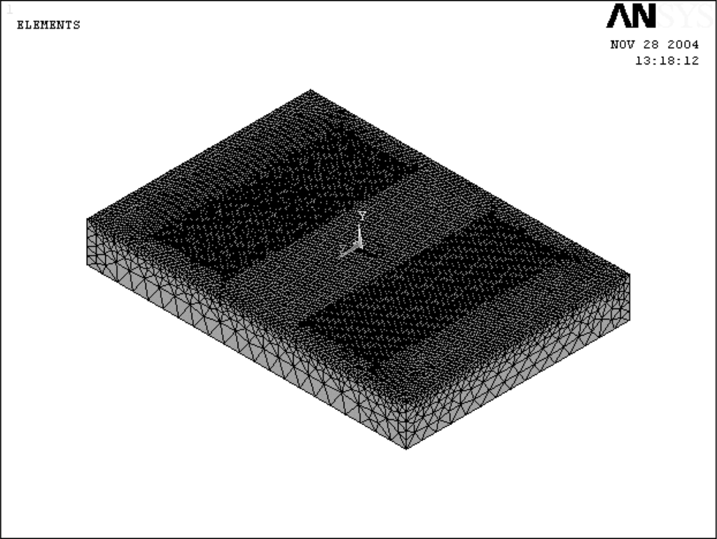 In accordance with the design parameter combinations in the OA table, eighteen different SAW finite element models were constructed using the model presented previously by Wu [14]. An ANYSY electro-mechanical couple-field solid 98 3D-element was utilized to account for the interaction between the structural and electric fields of the SAW device in the computer simulation, i.e. to model the voltage generated by the displacement and vibration of the piezoelectric material when subjected to an applied voltage. Variational principles were used to develop the finite element equations incorporating the piezoelectric effects and the electromechanical constitutive equations [20] in order to describe the linear material behavior, i.e.