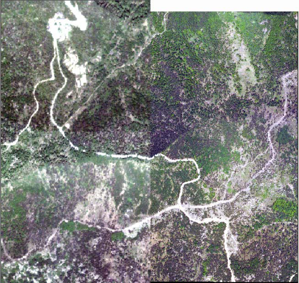 Figure 11, we can see that roads connect after registration. In order to assess the match accuracy, 20 points was selected randomly, and the RMSE computed from the points is 0.47 pixels, indicating a good match.