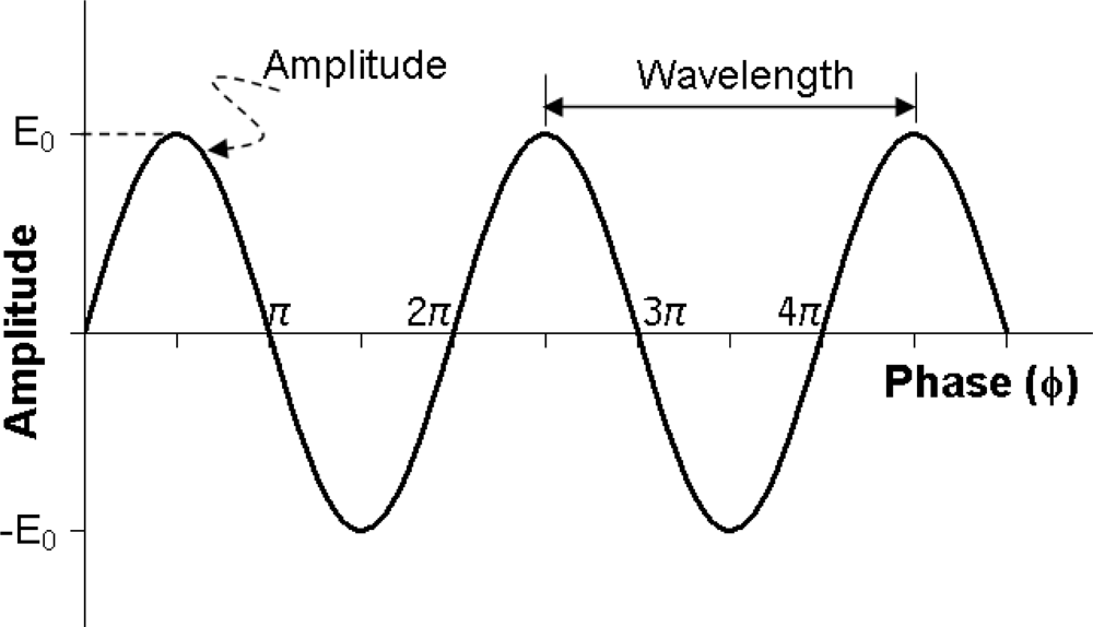 The relationship among amplitude, phase, and wavelength of a radar signal. The intensity of the radar signal is proportional to the squared amplitude.
